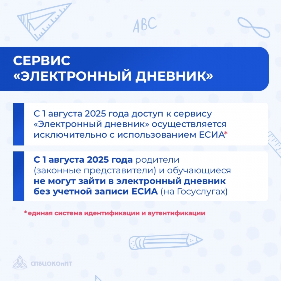 С 1 августа 2025 года вход в сервис «Электронный дневник» возможен только с использованием ЕСИА («Госуслуги»).